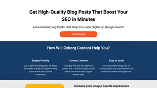 AI-powered platform generates high-quality blog posts for maximum SEO impact, saving time and money while driving traffic.
