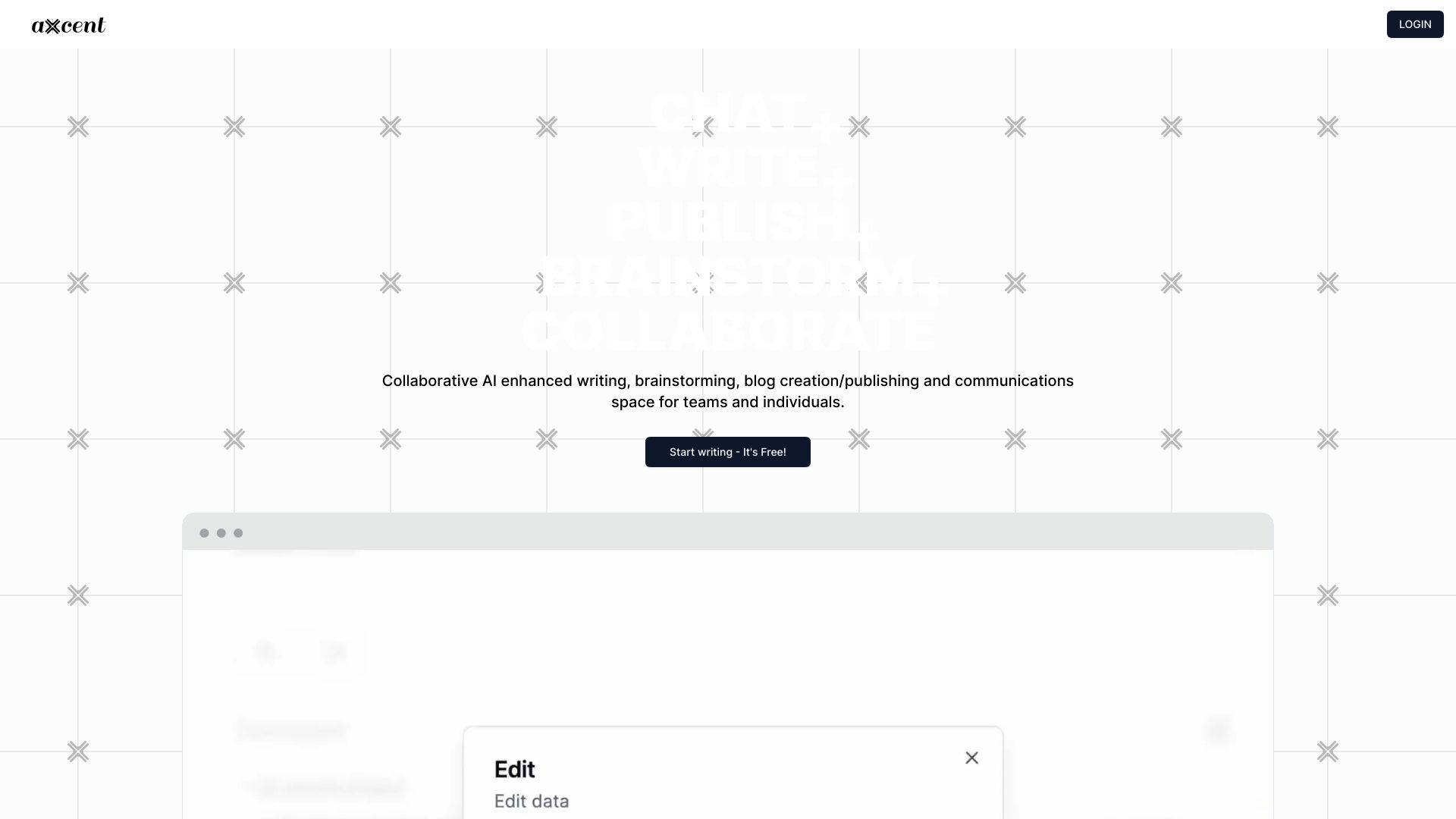 - Axcent est une plateforme collaborative d'écriture améliorée par l'IA, de brainstorming, de publication et de collaboration.
