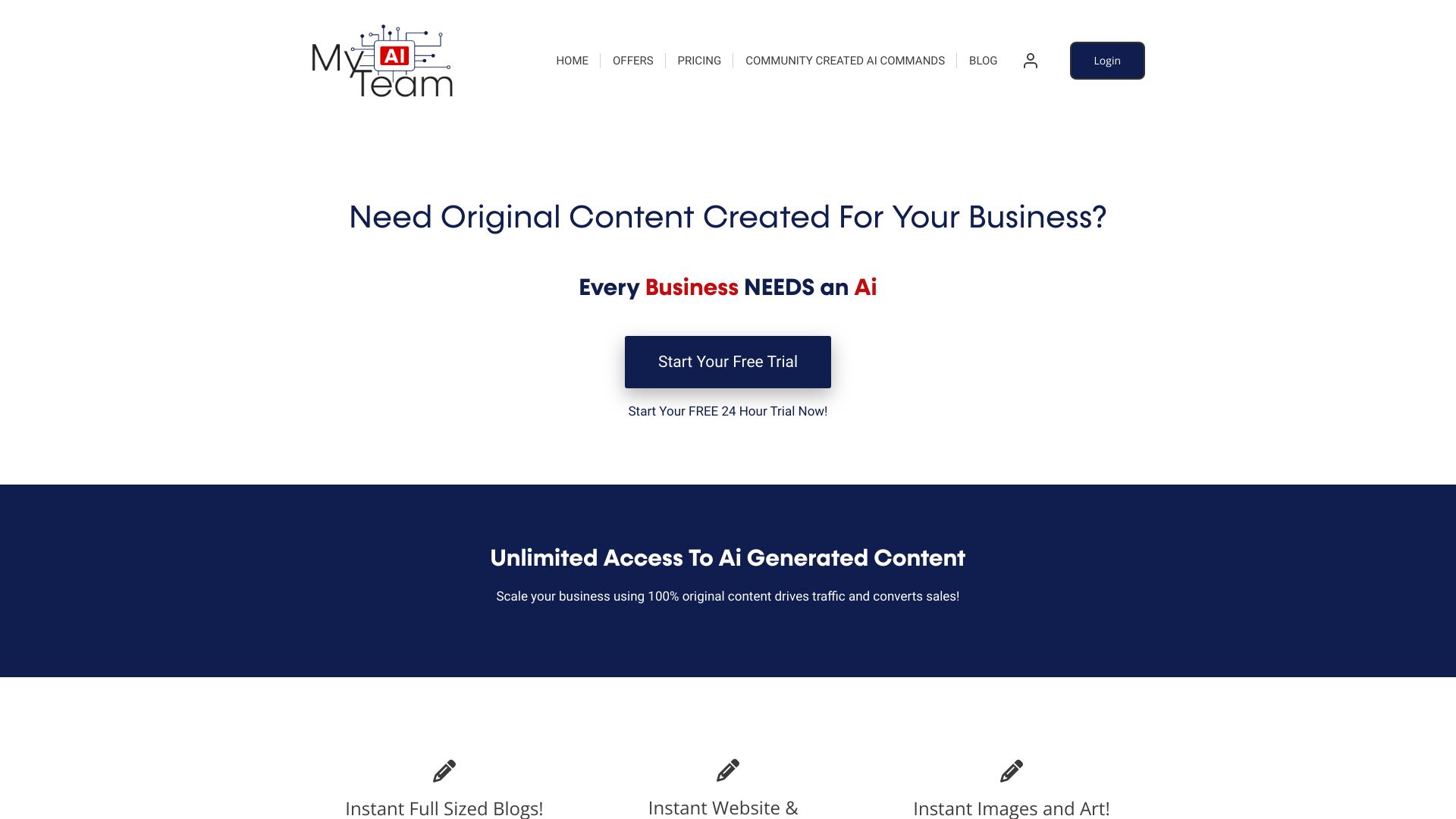 - Avec MyAiTeam, vous pouvez générer des blogs complets, des textes pour sites web et publicités, ainsi que des images et des illustrations. La plateforme propose une génération de textes et d'images alimentée par l'IA, qui peuvent être utilisées séparément ou en combinaison.