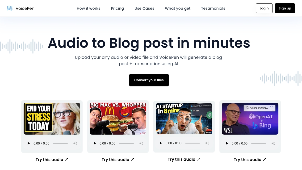 - VoicePen peut convertir l'audio, la vidéo, les mémos vocaux et les sites Web en articles de blog.