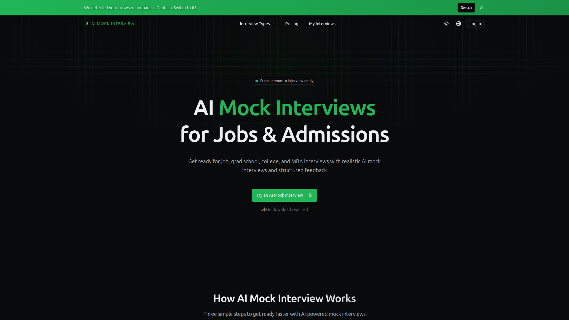 AI Mock Interview 提供免费入门选项,无需下载即可立即开始体验。
