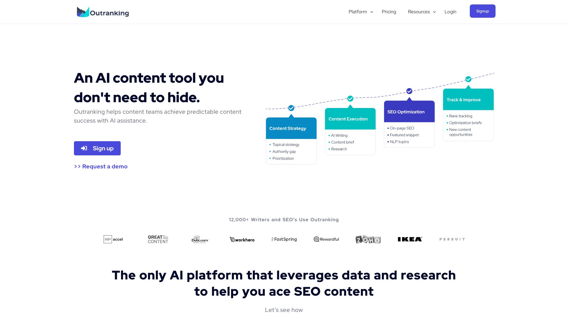 - Outranking通过使用人工智能功能如页面优化、语义词定位、检查和修复抄袭内容以及AI辅助写作工作流程,优化内容以实现排名成功。这些功能确保您的内容符合搜索引擎优化的最佳实践,并提供有价值的用户体验。
