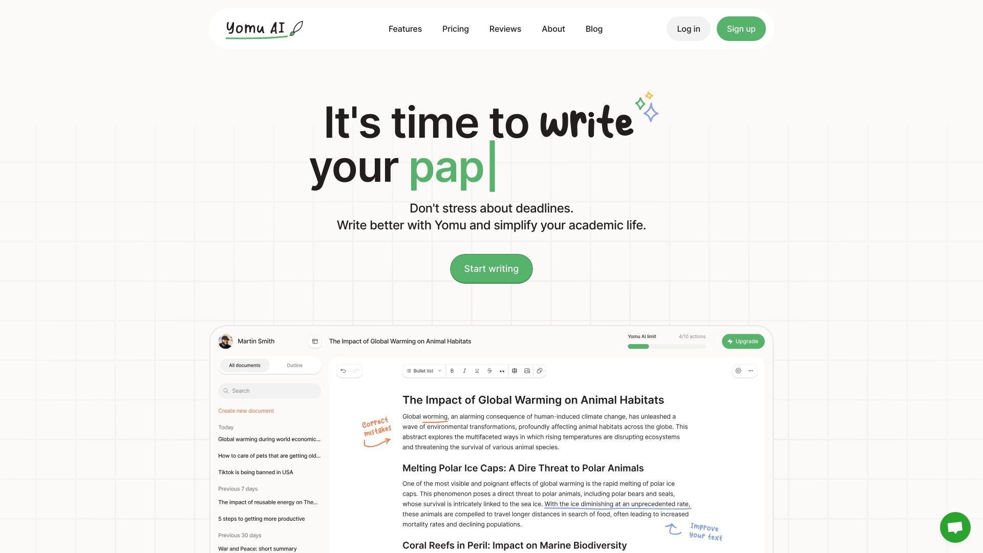 - Yomu不使用ChatGPT,它拥有自己专门为写作和学术任务设计的AI算法。