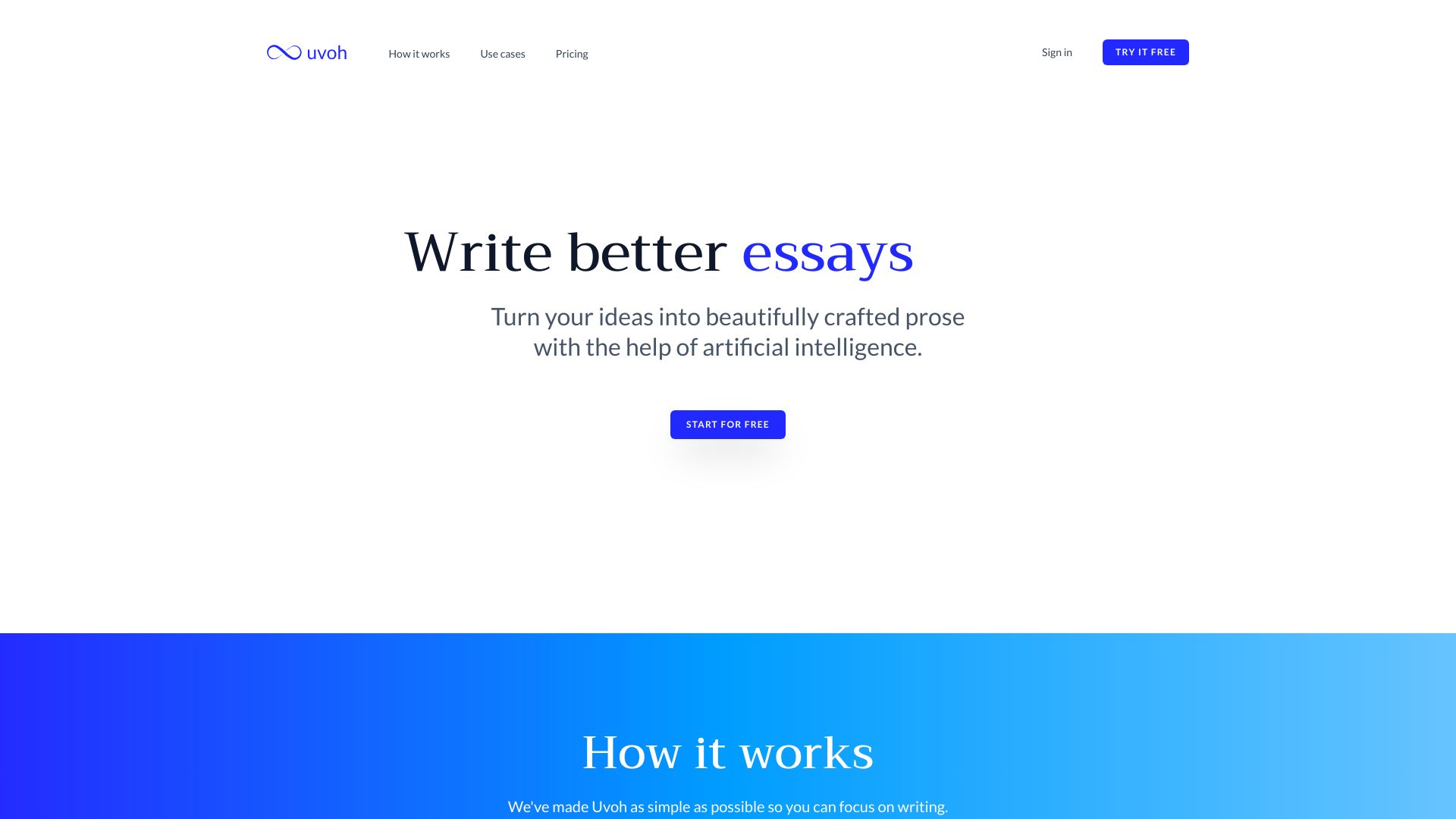 - Uvoh 使用人工智慧根據使用者的提示生成引人注目的想法、大綱和文章。使用者可以編輯和完善輸出以適應他們的需求。
